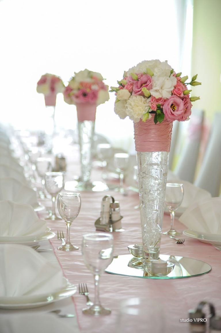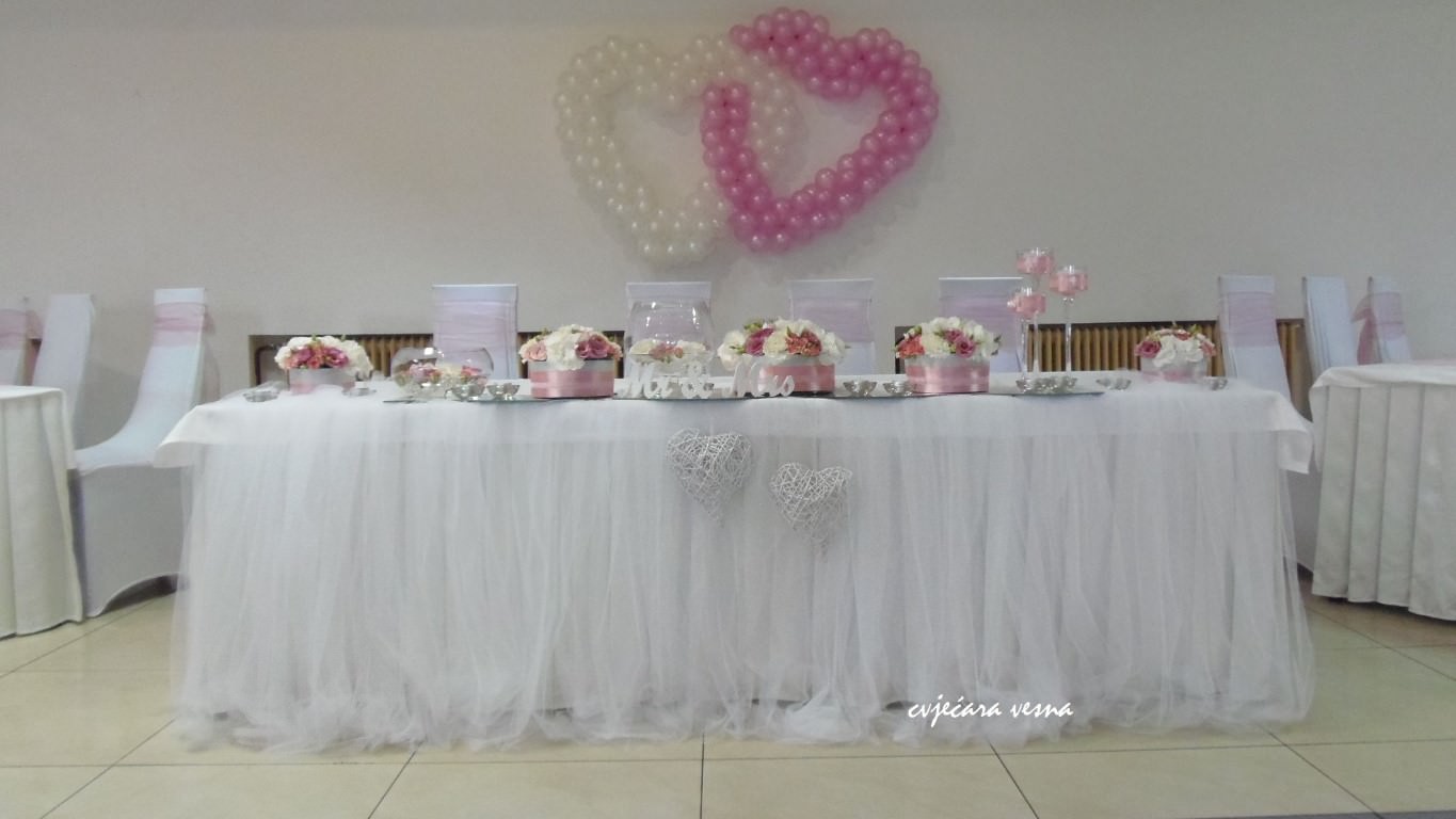 Ivana i Toni svoju proljetnu ljubavnu priču obojili su u roza i bijelo. Hortenzije, karanfili , lizijantusi i mini ruže bili su skladna podloga za nježne bijele leptire, koje je naša mladenka poželjela u dekoraciji.